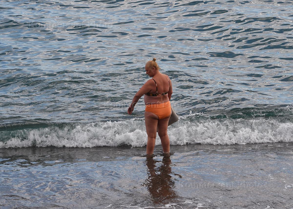 Velvet season in Crimea. Views of Alushta. Fishermen with fishing rods on the beach.