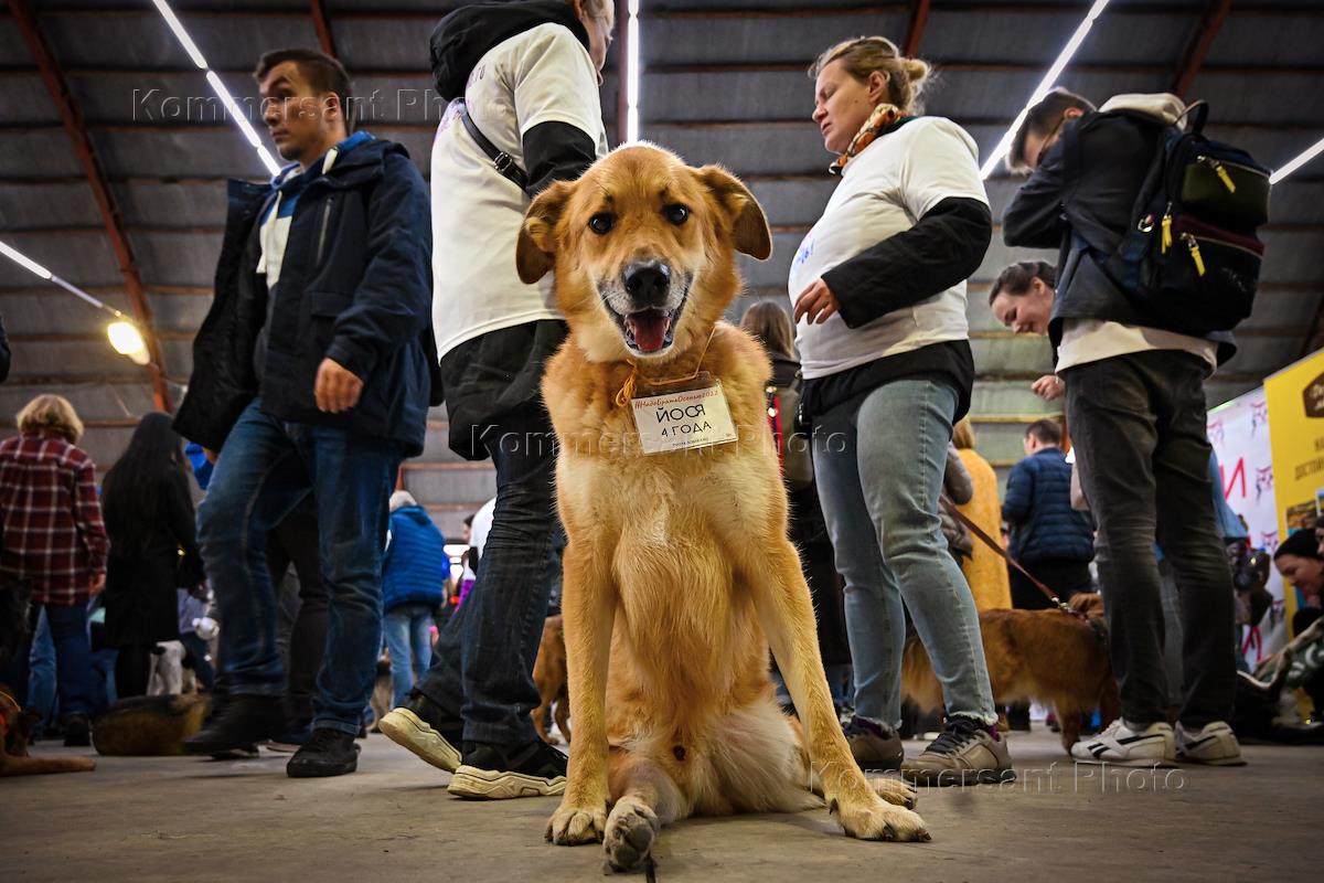 Выставка бездомных собак "Надо брать! Осенью!" в пространстве "Ангар" на территории "Хлебозавода № 9". Четырехлетний Йося ждет своих новых хозяев.