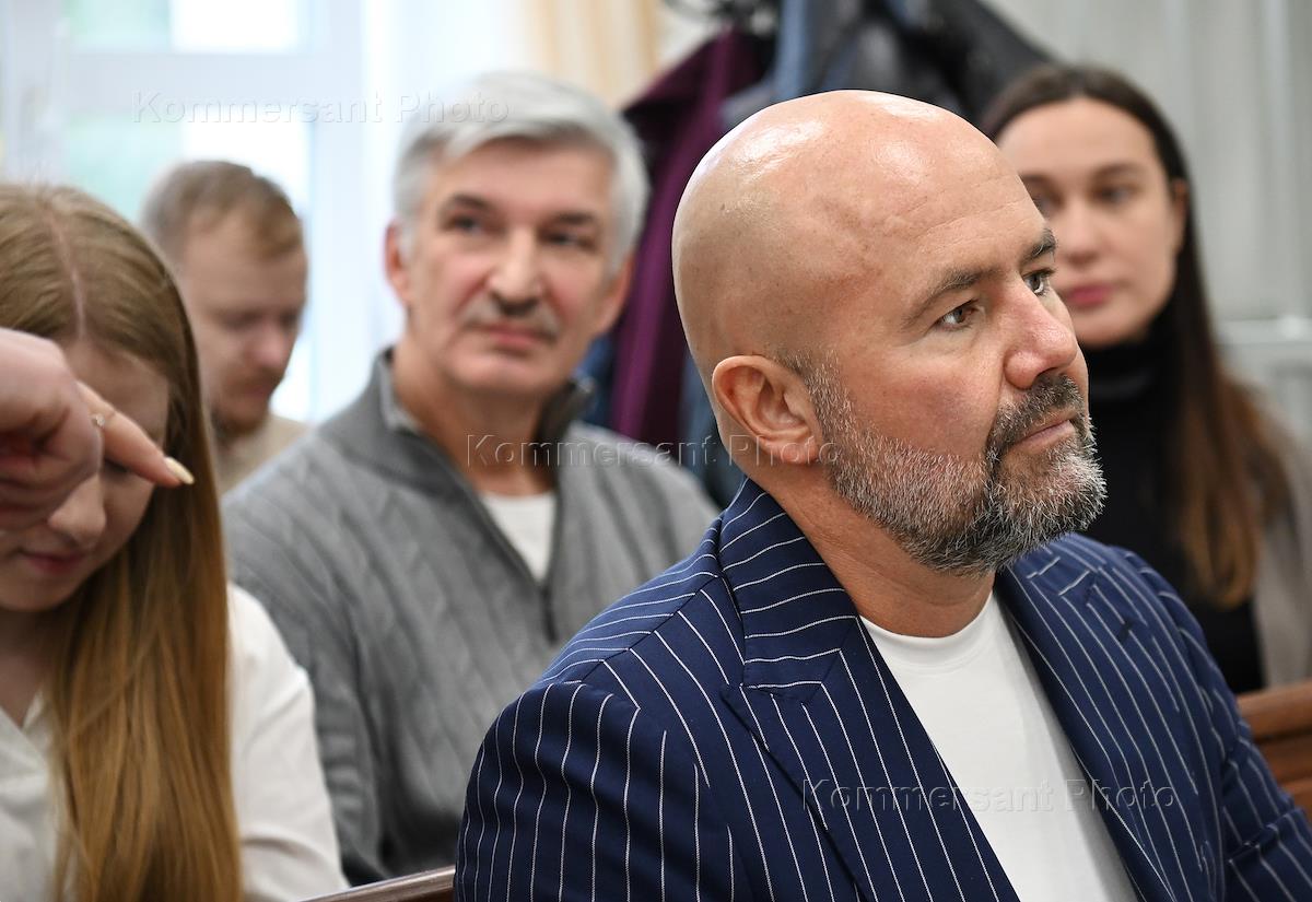 Hearings on the case of embezzlement of 330 million rubles from the Roskosmos corporation in the Khimki city court. Sergei Lemeshevsky (second from right), former CEO of JSC NPO named after S. Lavochkin, and lawyer Igor Tretyakov (center) during the court session.