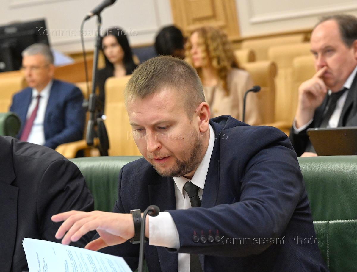 Meeting of the Committee of the Federation Council of Russia on constitutional legislation, on the consideration of laws on the accession to Russia of the Donetsk People's Republic (DPR), Luhansk People's Republic (LPR), Kherson and Zaporozhye regions in the Federation Council of Russia. Plenipotentiary Representative of the President of Russia in the Federation Council of Russia Artur Muraviev during the meeting.