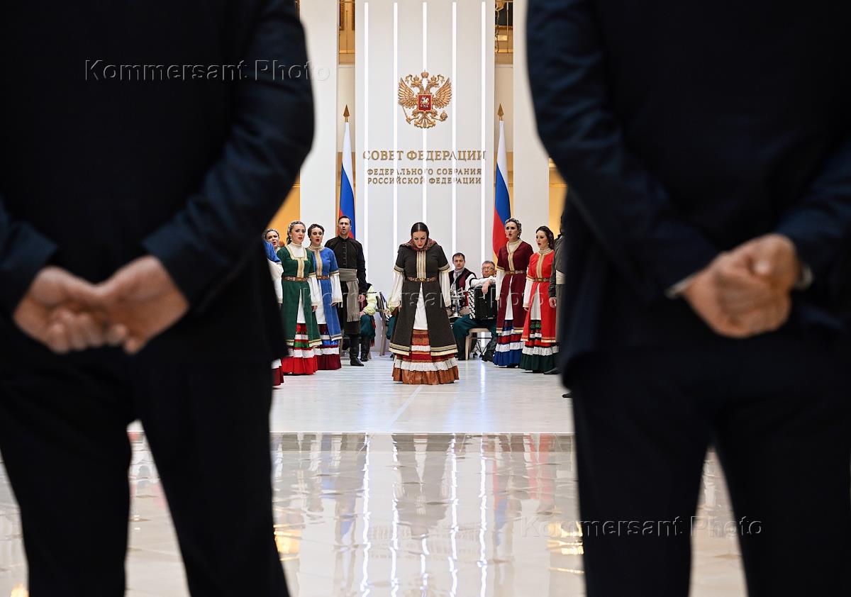 Days of the Omsk region in the Federation Council of Russia. Artists of the Omsk Russian Folk Choir during a performance in the Federation Council of Russia.
