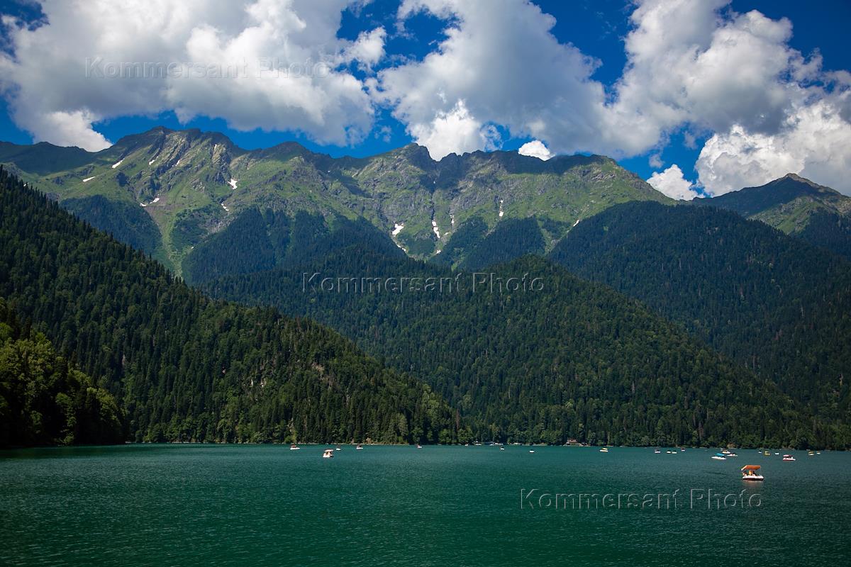 Views of Abkhazia. Genre photography. Lake Ritsa.