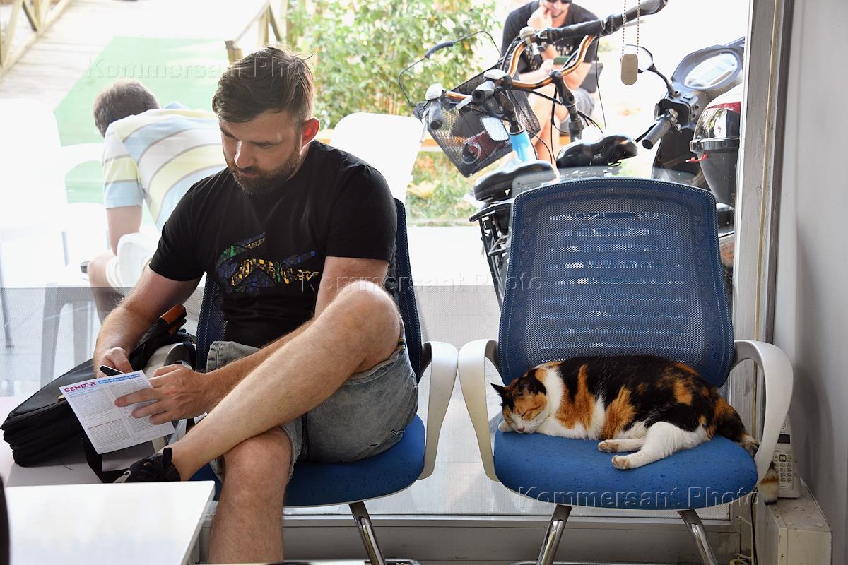 Views of Antalya. Genre photography. People at ATMs on the street.