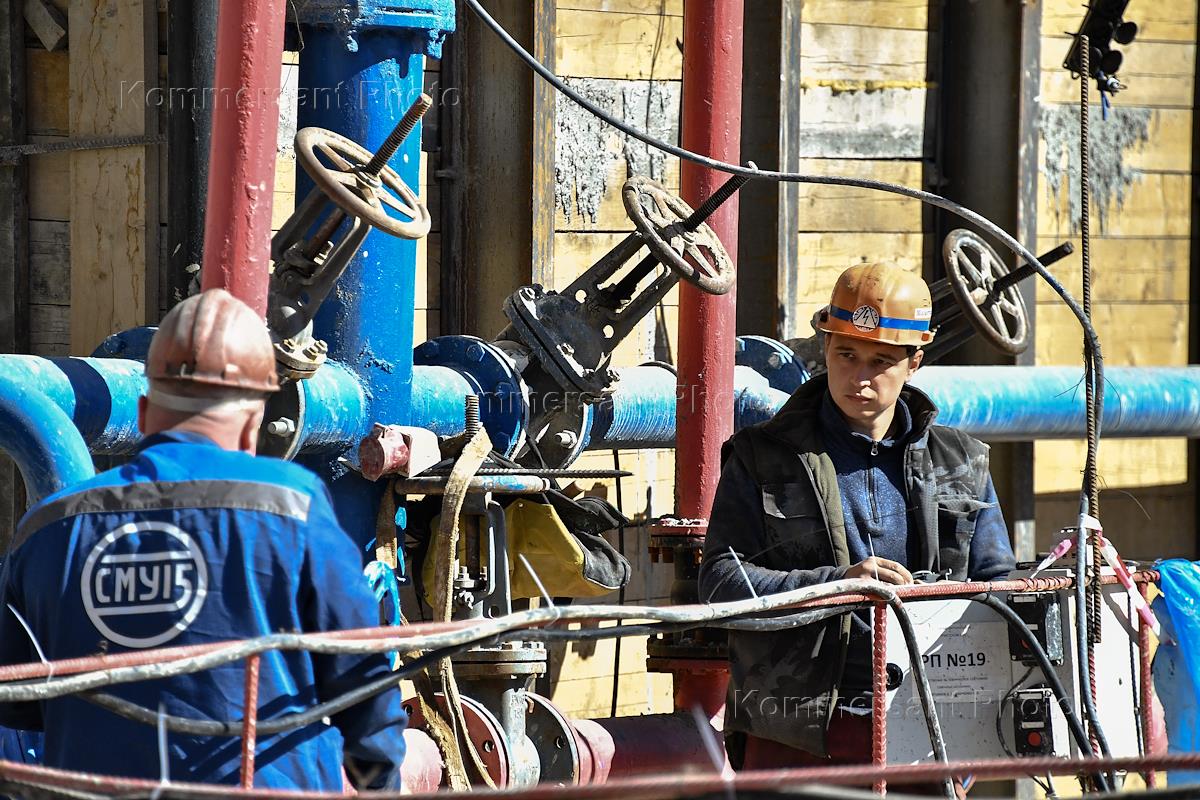 Строительство железной дороги Восточного полигона в границах Владивостокского территориального управления ОАО "РЖД". Жанровая фотография. Рабочие на строительной площадке.