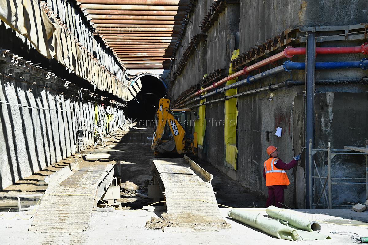 Construction of the railway of the Eastern range within the boundaries of the Vladivostok Territorial Administration of Russian Railways. Genre photography. Workers in the tunnel.