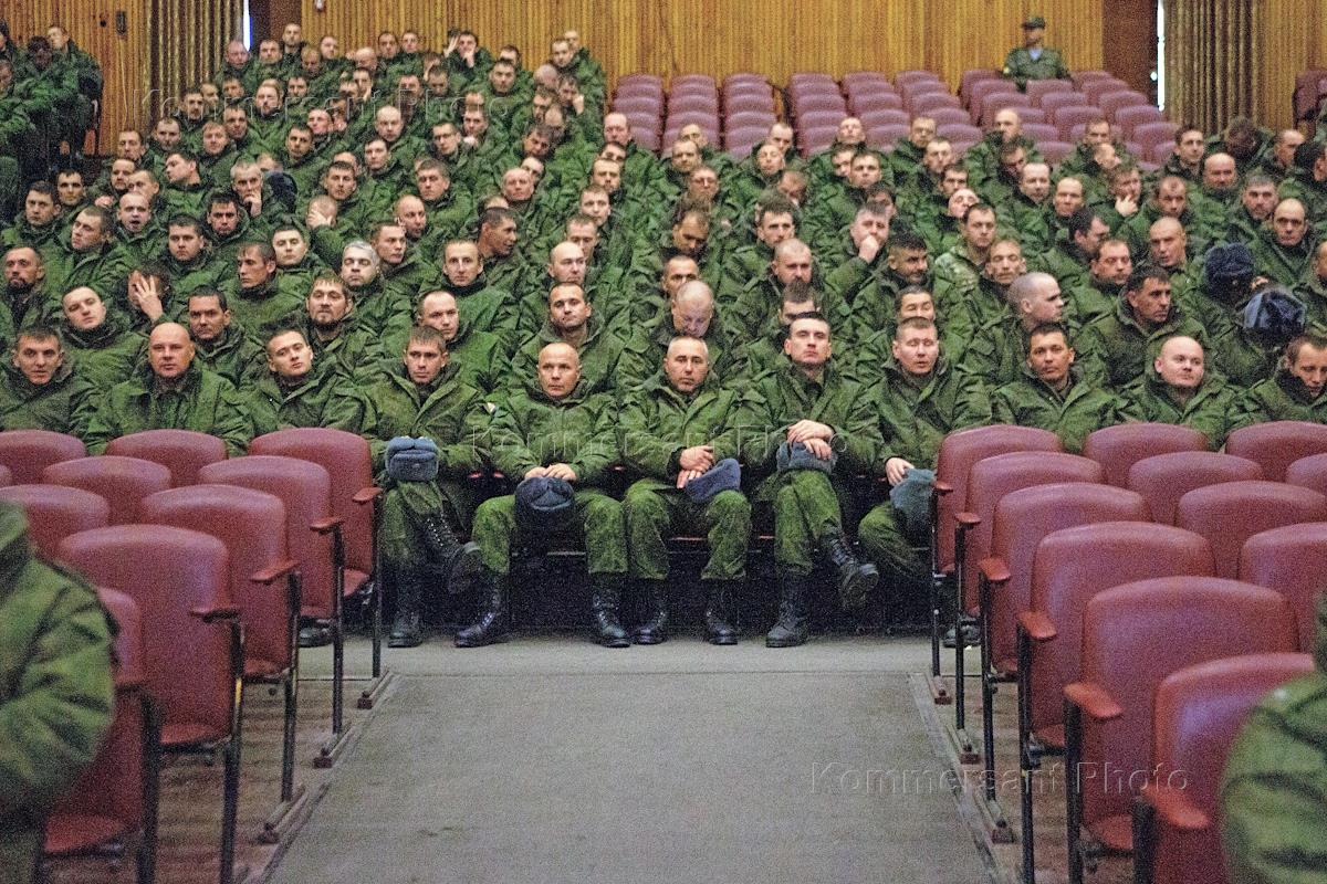 Проведение частичной военной мобилизации, объявленной президентом России Владимиром Путиным 21 сентября 2022 года. Мобилизованные перед отправкой в зону специальной военной операции в Доме культуры "Звезда" Новосибирского высшего военно-командного училища Министерства обороны России.