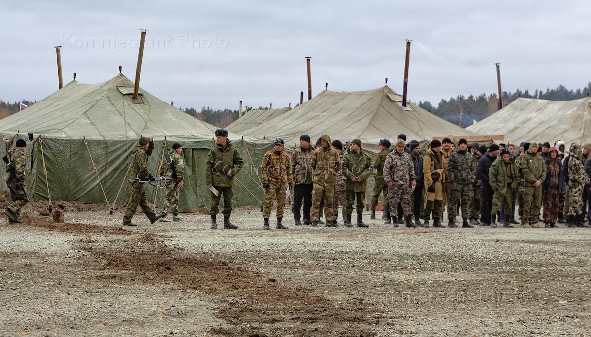 Проведение частичной военной мобилизации, объявленной президентом России Владимиром Путиным 21 сентября 2022 года. Мобилизованные перед отправкой в зону специальной военной операции на территории Новосибирского высшего военно-командного училища Министерства обороны России.