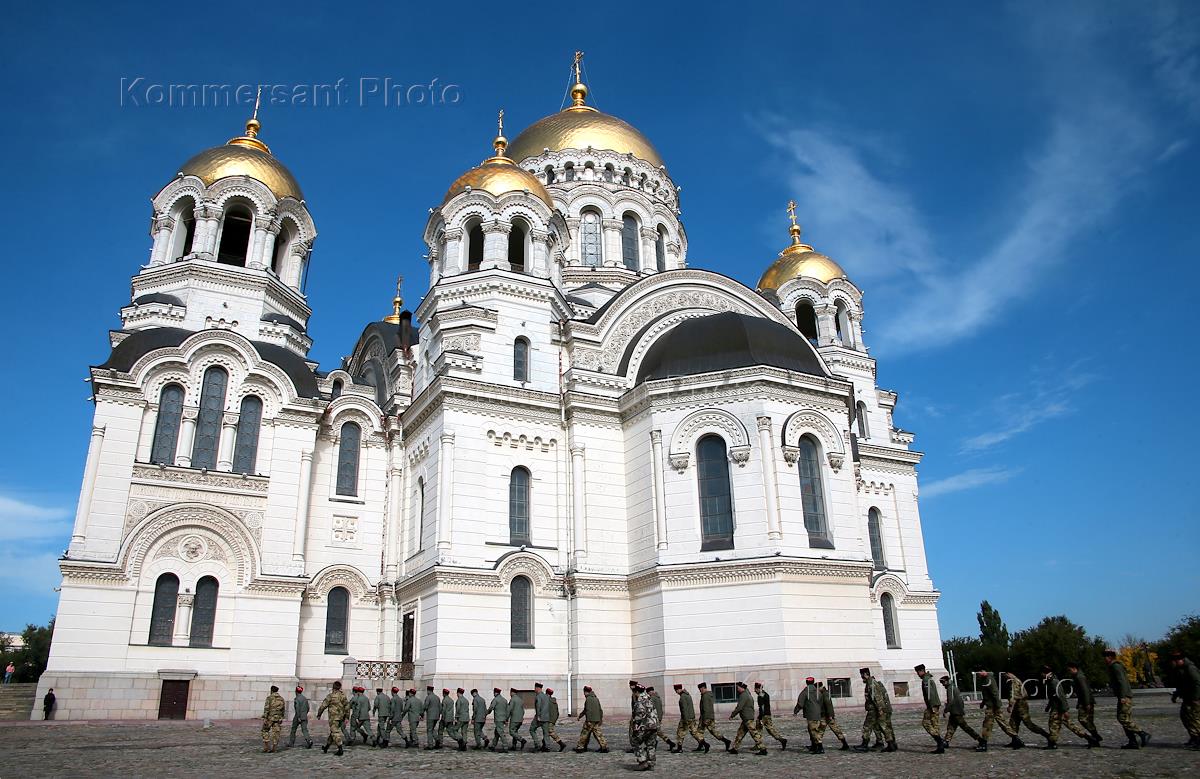 Volunteers of the "Don" volunteer brigade at the Patriarchal Ascension Military All-Cossack Cathedral before being sent to the zone of the special military operation.