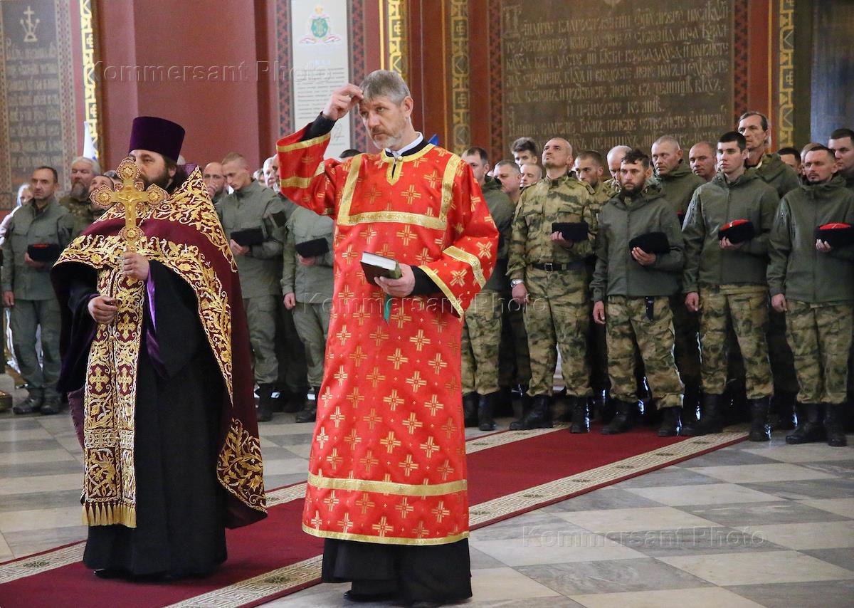 Volunteers of the "Don" volunteer brigade at the Patriarchal Ascension Military All-Cossack Cathedral before being sent to the zone of the special military operation.