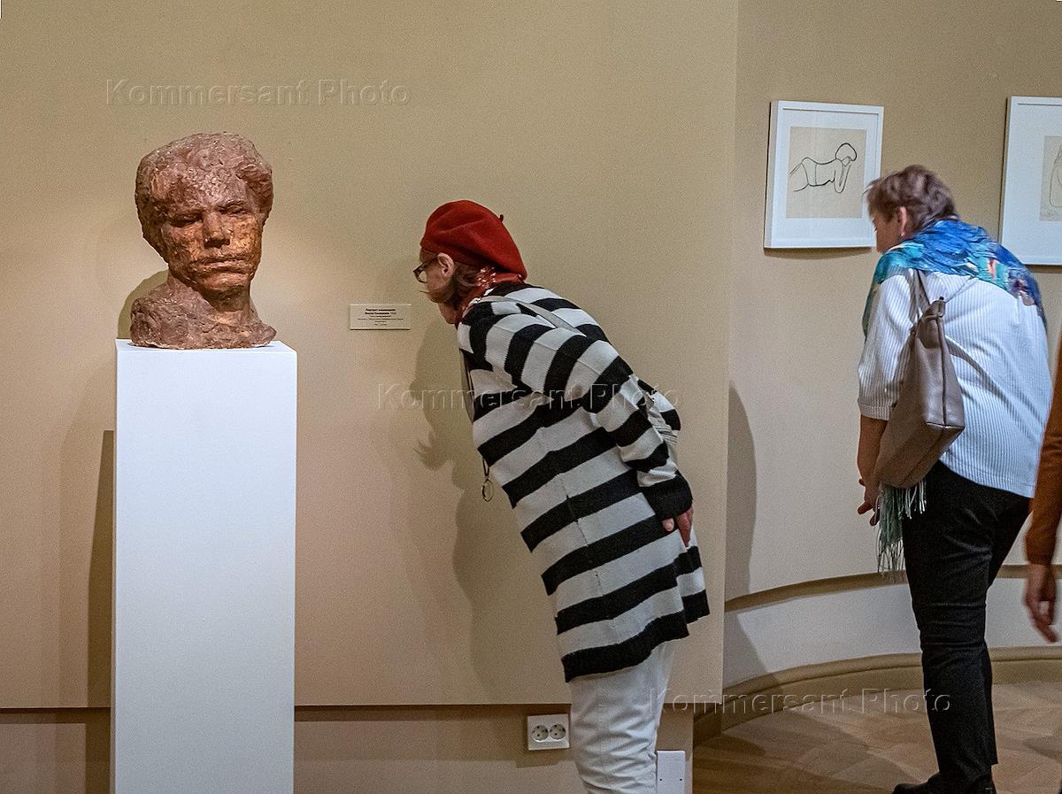Press show of the exhibition "Naum Mogilevsky. Sculpture and Graphics" in the Mikhailovsky Castle of the State Russian Museum. Visitors at the exhibition.