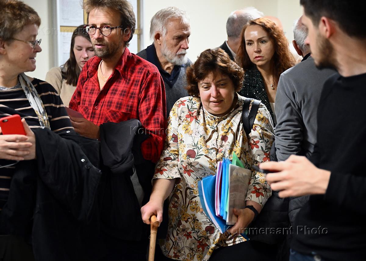 Рассмотрение искового заявления заместителя генерального прокурора России об обращении в доход государства имущества научно-исследовательского и просветительского центра (НИПЦ) "Мемориал" - организации ликвидированного общества "Международный "Мемориал" (признано в России НКО-иноагентом) в Тверском районном суде. Жанровая фотография.