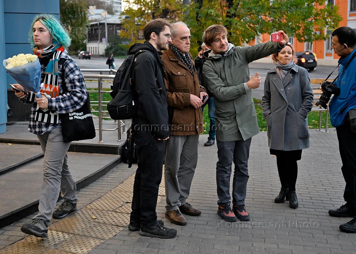 Announcement of the verdict on the consideration of the statement of claim of the Deputy Prosecutor General of Russia on the transfer to state revenue of the property of the research and educational center "Memorial" - an organization of the liquidated society "Memorial International" (recognized in Russia as an NPO-foreign agent) in the Tverskoy District Court. Chairman of the Board of the International Society "Memorial" Yan Rachinsky (center) before the start of the court session.