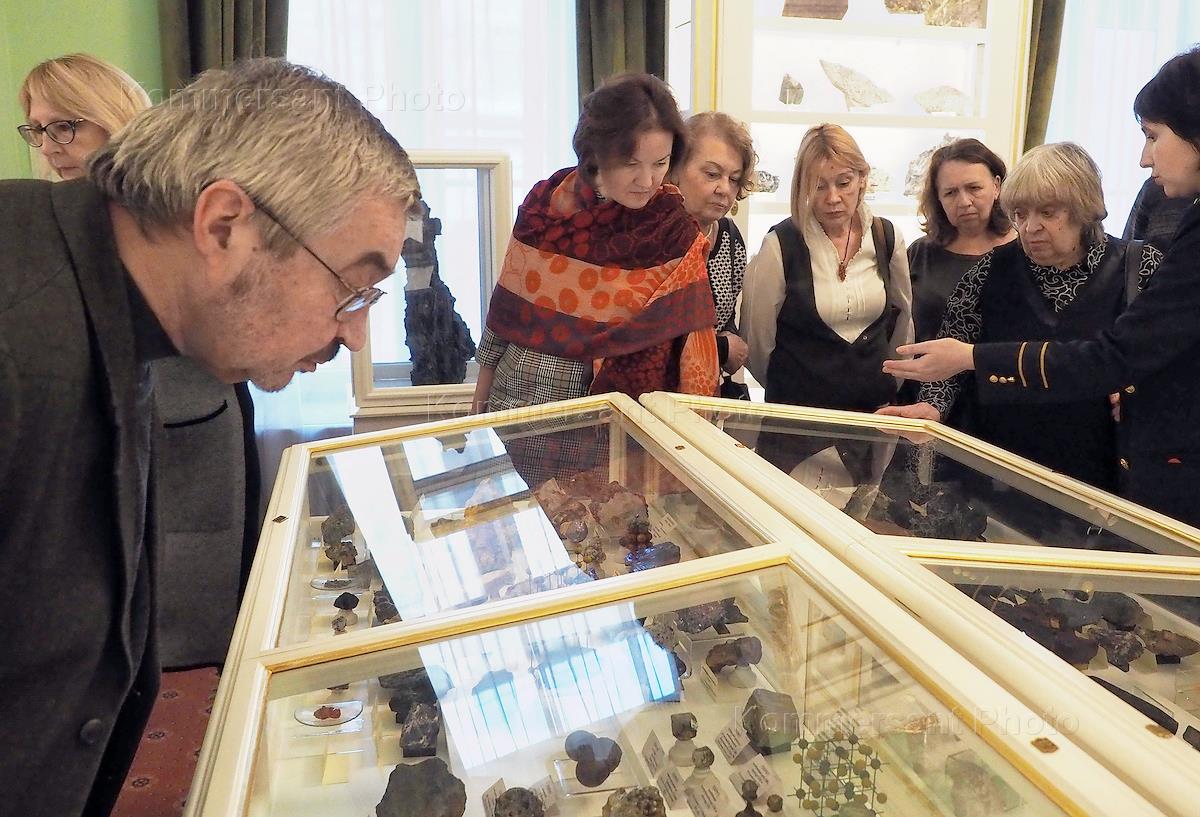 Mining Museum of St. Petersburg Mining University. Genre photography. Visitors on tour.