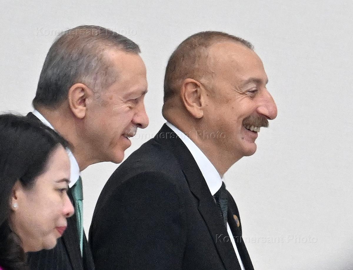 Рабочая поездка президента России Владимира Путина в Астану. VI саммит Совещания по взаимодействию и мерам доверия в Азии (СВМДА) во Дворце Независимости. Слева направо: вице-президент Вьетнама Во Тхи Ань Суан, президент Турции Реджеп Тайип Эрдоган и президент Азербайджана Ильхам Алиев перед пленарным заседанием саммита.