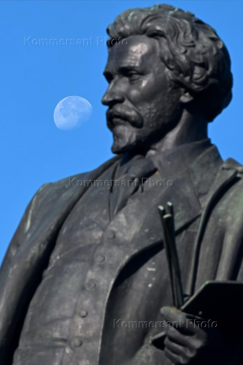 Views of Moscow. Genre photography. Monument to the artist Ilya Repin on Bolotnaya Square.