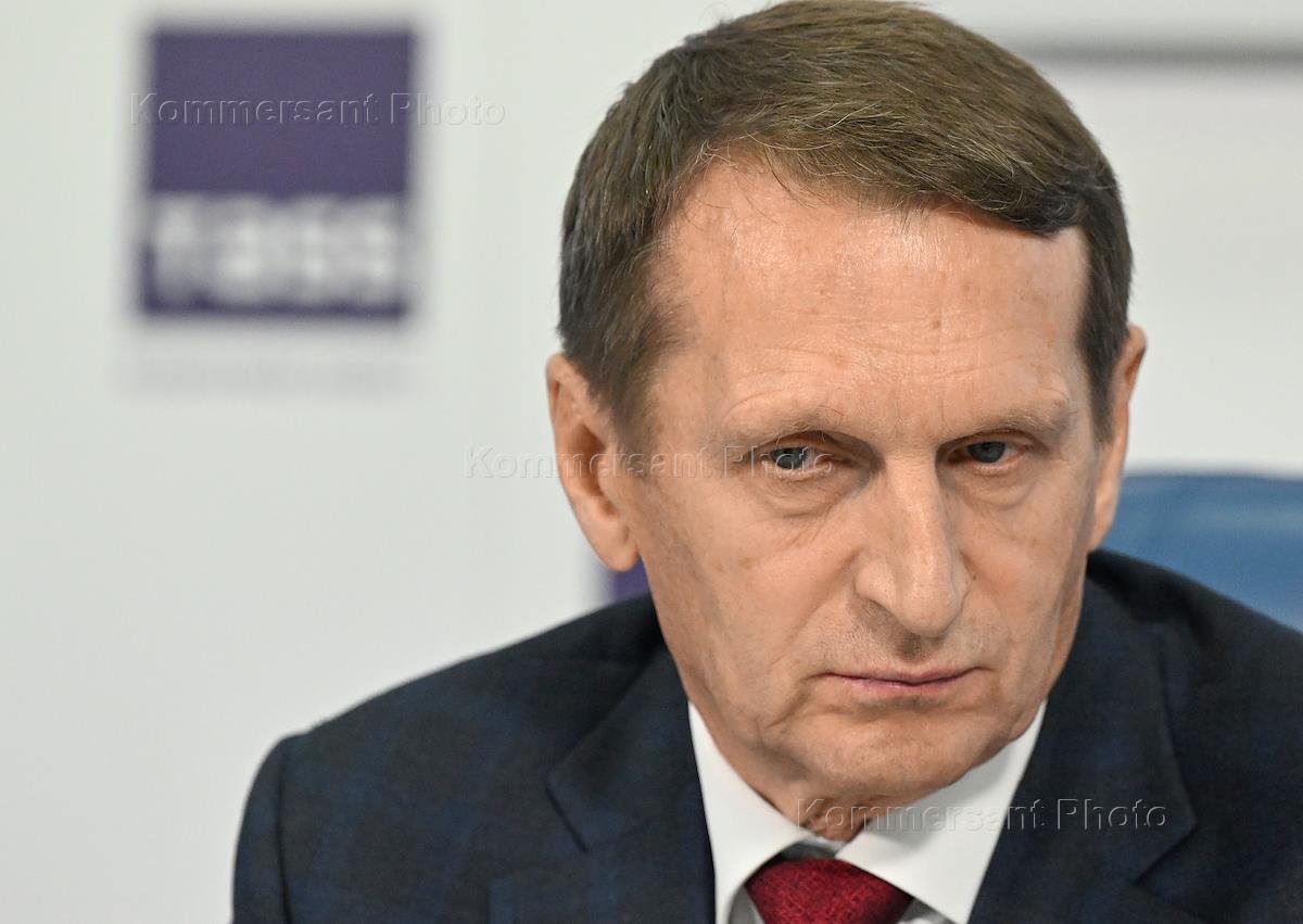 Press conference on the results of the IV International educational campaign "Dictation of Victory - 2022" at the TASS news agency. Chairman of the Russian Historical Society, head of the Russian Foreign Intelligence Service Sergei Naryshkin during the press conference.