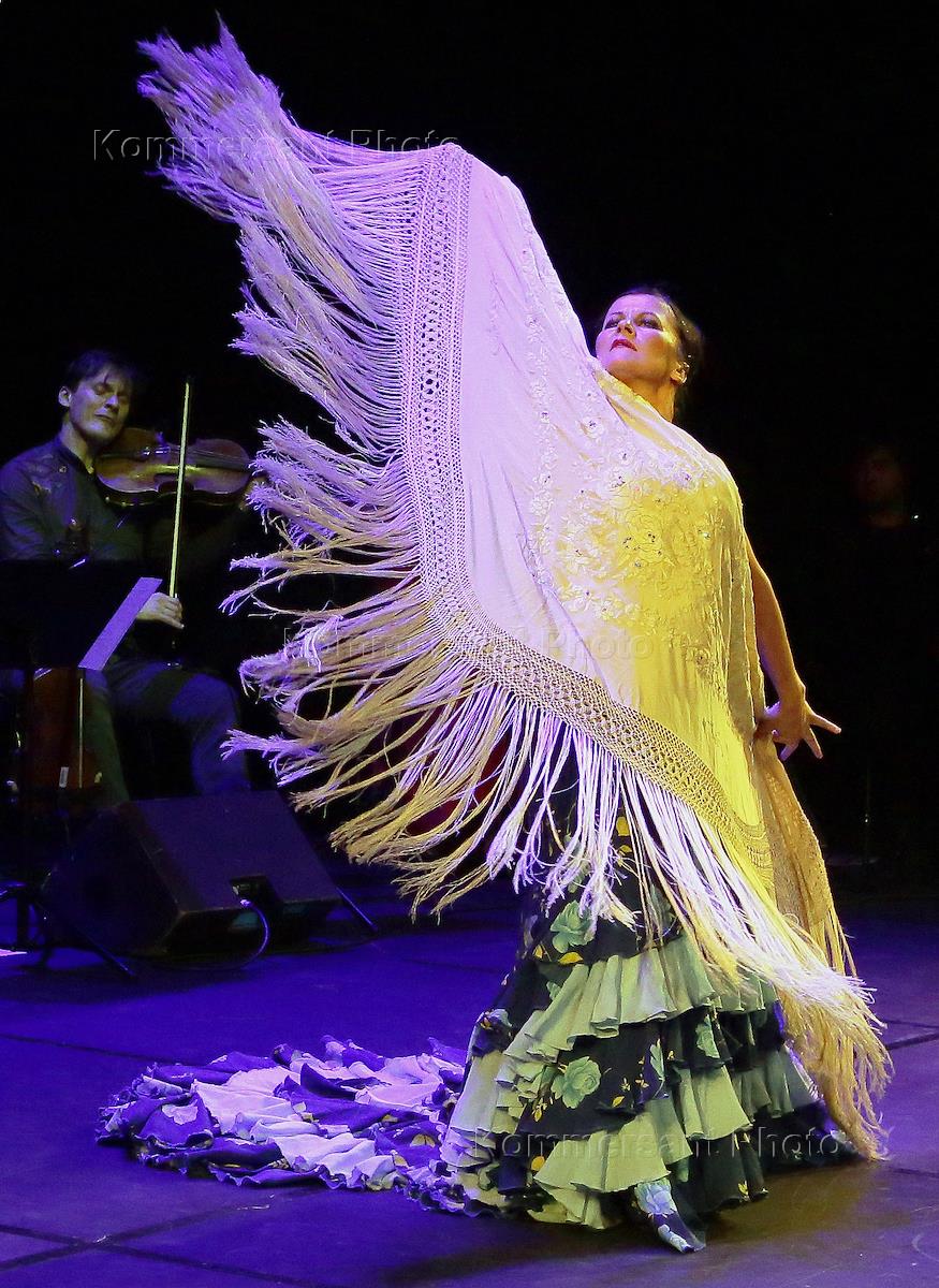 Фламенко-шоу Barocco Flamenco Capriccios хореографа Ольги Пшеницыной в Московском международном Доме музыки. Российская исполнительница фламенко, хореограф Ольга Пшеницына во время шоу.