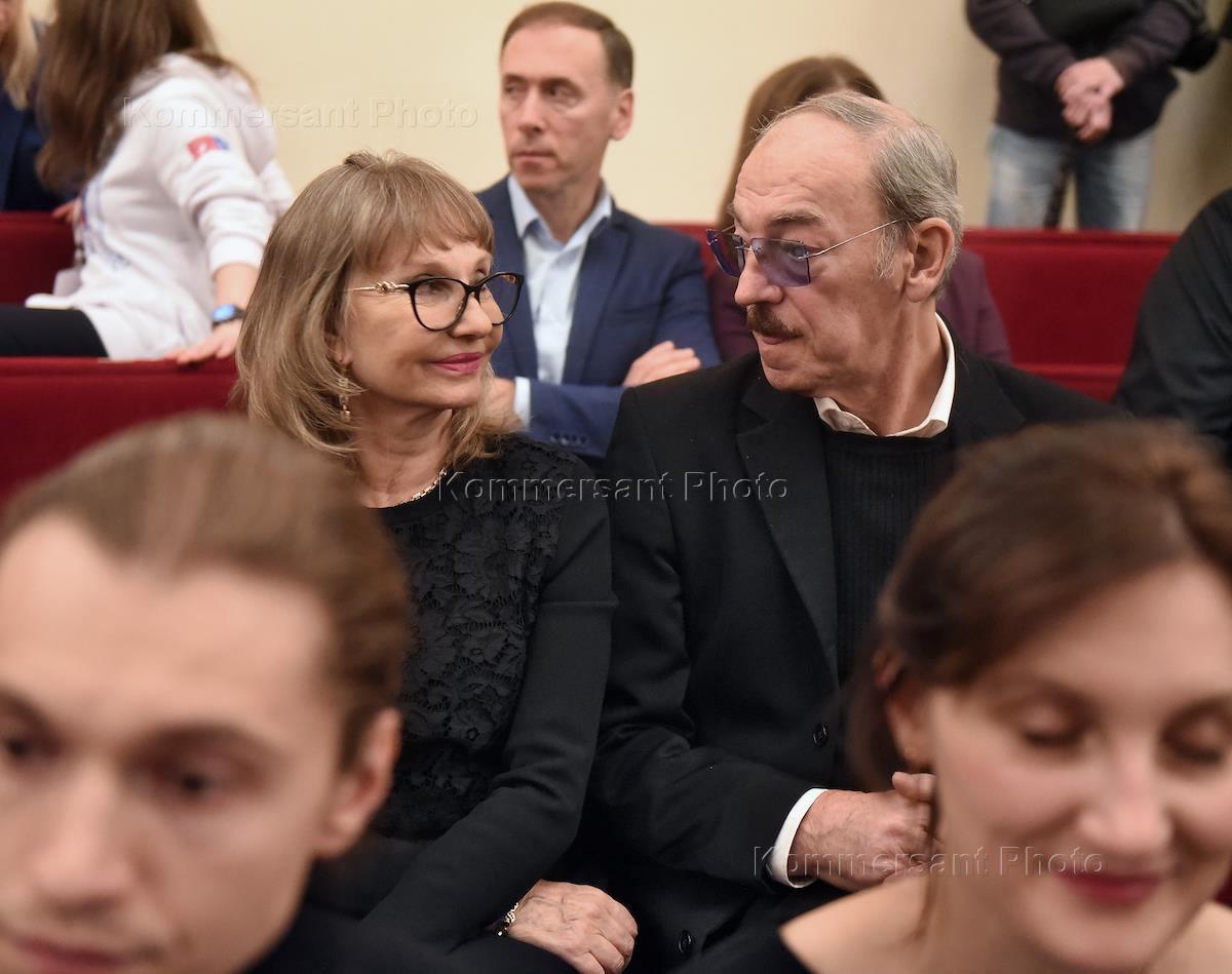 Premiere of the film "Peter I. The Last Tsar and First Emperor" at the Alexandrinsky Theatre. Actors Mikhail Boyarsky (right) and Larisa Luppian (left) at the premiere.