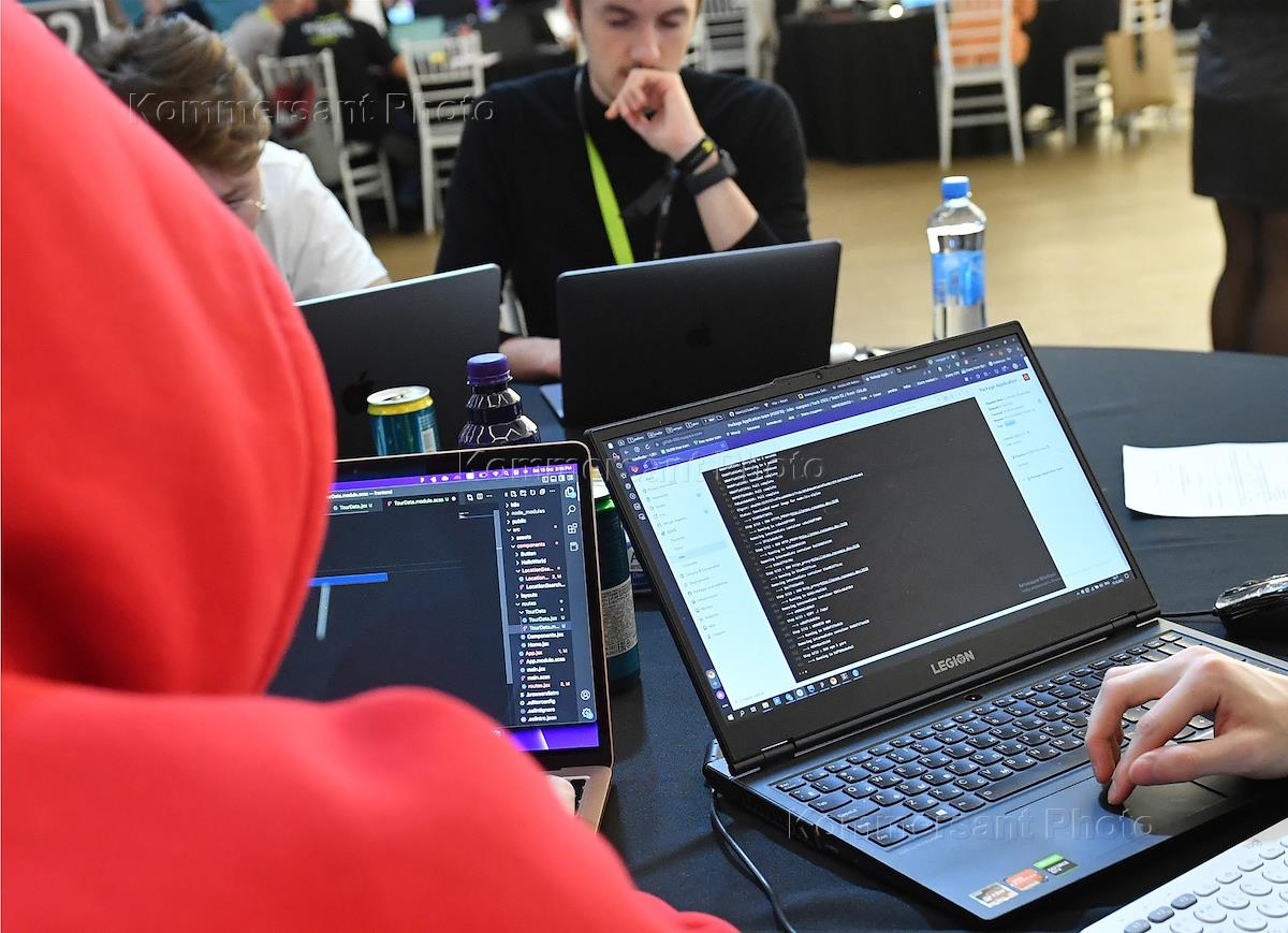 The third large-scale competition in the field of digitalization of tourism (hackathon) Moscow Travel Hack in full-time format in the Double Space conference hall. Participants during the competition.