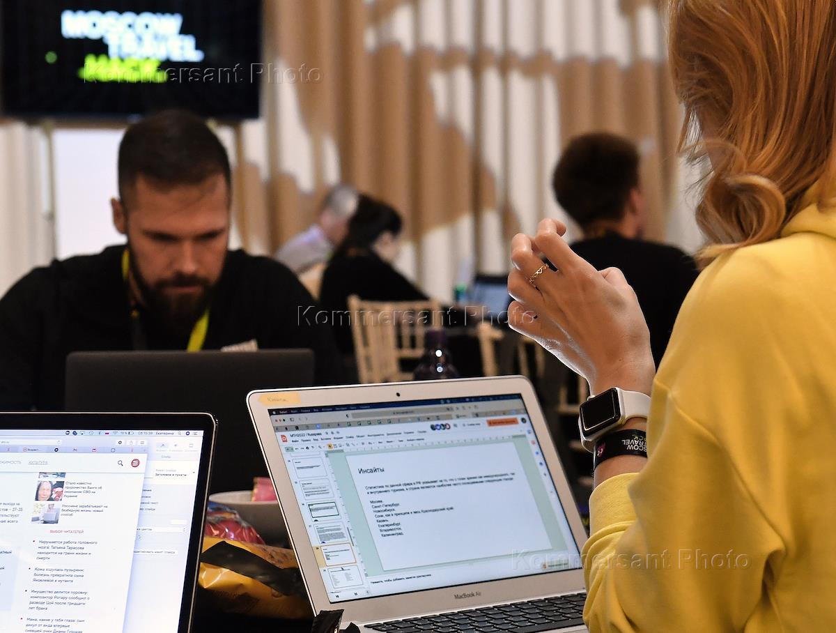 The third large-scale competition in the field of digitalization of tourism (hackathon) Moscow Travel Hack in full-time format in the Double Space conference hall. Participants during the competition.