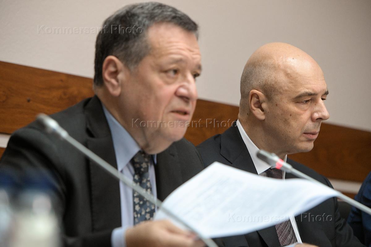Meeting of the Committee of the State Duma of Russia on the budget and taxes in the State Duma of Russia. Chairman of the State Duma Committee on Budget and Taxes Andrey Makarov (left) and Russian Finance Minister Anton Siluanov (right) during the meeting.