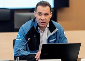 Центр строительства крупнотоннажных морских сооружений (ЦСКМС) компании НОВАТЭК. Производство технологических линий для проекта "Арктик СПГ 2" компании НОВАТЭК. Генеральный директор компании "НОВАТЭК-Мурманск" Петр Оборин во время встречи с журналистами.
