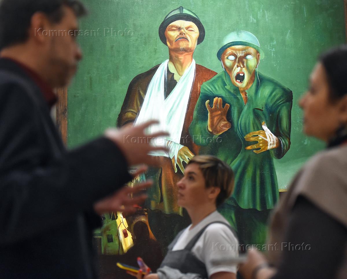 Выставка "Картины военной жизни в отечественном искусстве XVI-XX веков" в Корпусе Бенуа Государственного Русского музея. Посетители на выставке.
