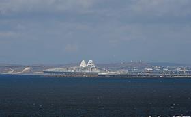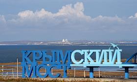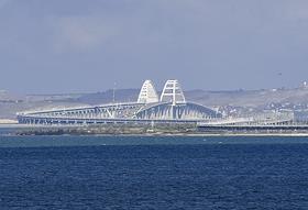 Вид на Крымским мост через Керченский пролив со смотровой площадки.