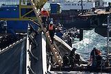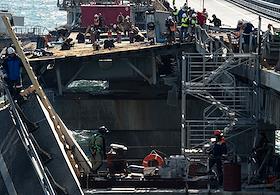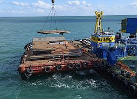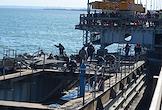 Последствия взрыва на Крымском мосту. Демонтаж поврежденных пролетных строений автодорожной части. Работы на мостовом переходе ведутся круглосуточно, в них задействовано 410 человек и 40 единиц техники.