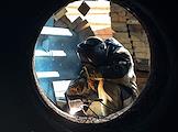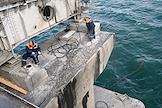 Последствия взрыва на Крымском мосту. Дорожные рабочие во время демонтажа поврежденных пролетных строений автодорожной части. Работы на мостовом переходе ведутся круглосуточно, в них задействовано 410 человек и 40 единиц техники.