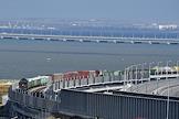 Последствия взрыва на Крымском мосту. Жанровая фотография. Железнодорожный состав во время движения по мосту.