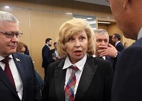 Церемония вручения высшей юридической премии "Фемида" в Центре международной торговли (ЦМТ). Уполномоченный по правам человека в России Татьяна Москалькова (в центре) и председатель комитета Государственной думы России по безопасности и противодействию коррупции Василий Пискарев (слева) на церемонии.