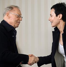 Пресс-конференция, посвященная объявлению программы XVI Международного театрального фестиваля им. А.П. Чехова в "Гранд Отеле Марриотт". Президент Международной конфедерации театральных союзов, директор Международного театрального фестиваля имени А.П.Чехова Валерий Шадрин (слева) и директор "Театра на Таганке" и театра "Содружество актеров Таганки" Ирина Апексимова (справа) во время пресс-конференции.