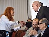 Пресс-конференция, посвященная объявлению программы XVI Международного театрального фестиваля им. А.П. Чехова в "Гранд Отеле Марриотт". Президент Международной конфедерации театральных союзов, директор Международного театрального фестиваля имени А.П.Чехова Валерий Шадрин (слева) и актриса, режиссер Нарине Григорян (справа) во время пресс-конференции.