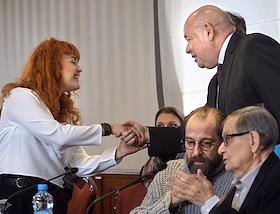 Пресс-конференция, посвященная объявлению программы XVI Международного театрального фестиваля им. А.П. Чехова в "Гранд Отеле Марриотт". Справа налево: театровед Алексей Бартошевич, вице-президент Международной конфедерации театральных союзов, художественный руководитель Студии SounDrama и Центра драматургии и режиссуры Владимир Панков и актриса Камила Мескелл во время пресс-конференции.