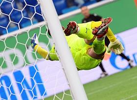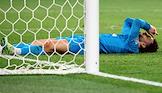 Российская Премьер-Лига (РПЛ). МИР - Чемпионат России по футболу 2022/2023. 14-й тур. Матч между командами "Зенит" (Санкт-Петербург) - "Сочи" (Сочи) на стадионе "Газпром Арена". Вратарь команды "Сочи" Сослан Джанаев во время матча.