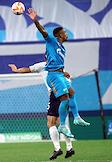 Российская Премьер-Лига (РПЛ). МИР - Чемпионат России по футболу 2022/2023. 14-й тур. Матч между командами "Зенит" (Санкт-Петербург) - "Сочи" (Сочи) на стадионе "Газпром Арена". Игрок команды "Зенит" Малком (слева) и игрок команды "Сочи" Кристиан Нобоа (справа) во время матча.