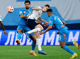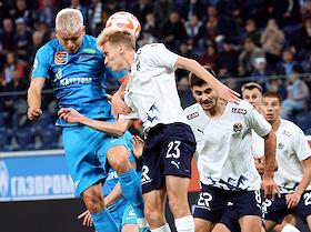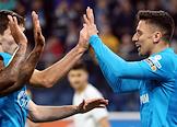 Российская Премьер-Лига (РПЛ). МИР - Чемпионат России по футболу 2022/2023. 14-й тур. Матч между командами "Зенит" (Санкт-Петербург) - "Сочи" (Сочи) на стадионе "Газпром Арена". Игроки команды "Зенит" во время матча.