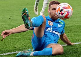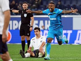 Российская Премьер-Лига (РПЛ). МИР - Чемпионат России по футболу 2022/2023. 14-й тур. Матч между командами "Зенит" (Санкт-Петербург) - "Сочи" (Сочи) на стадионе "Газпром Арена". Игрок команды "Зенит" Малком во время матча.
