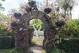 Виды города Губкин. Старый парк. Фигуры лебедей и резная арка из дерева.