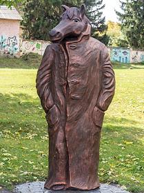 Виды города Губкин. Скульптура "Конь в пальто" в городском парке.