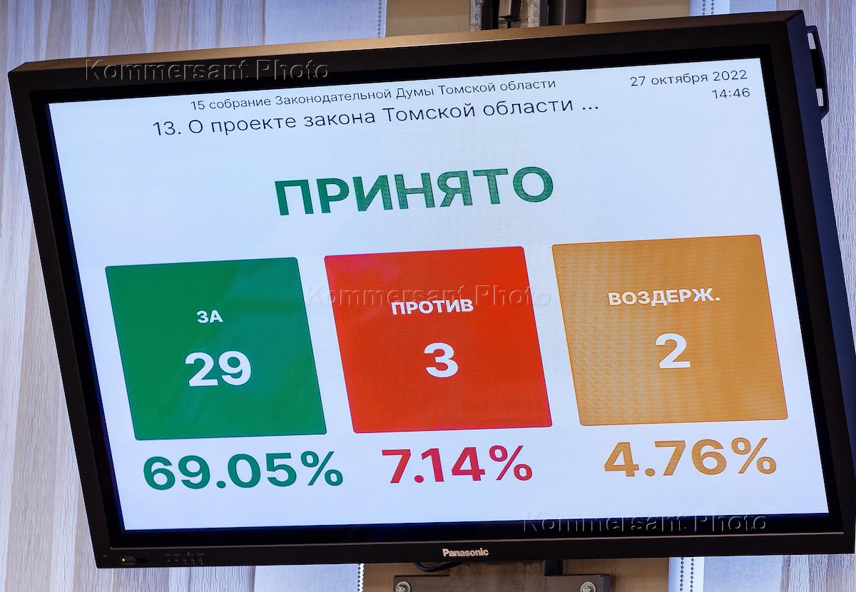 15-ое собрание Законодательной Думы Томской области. Жанровая фотография. Табло голосования.
