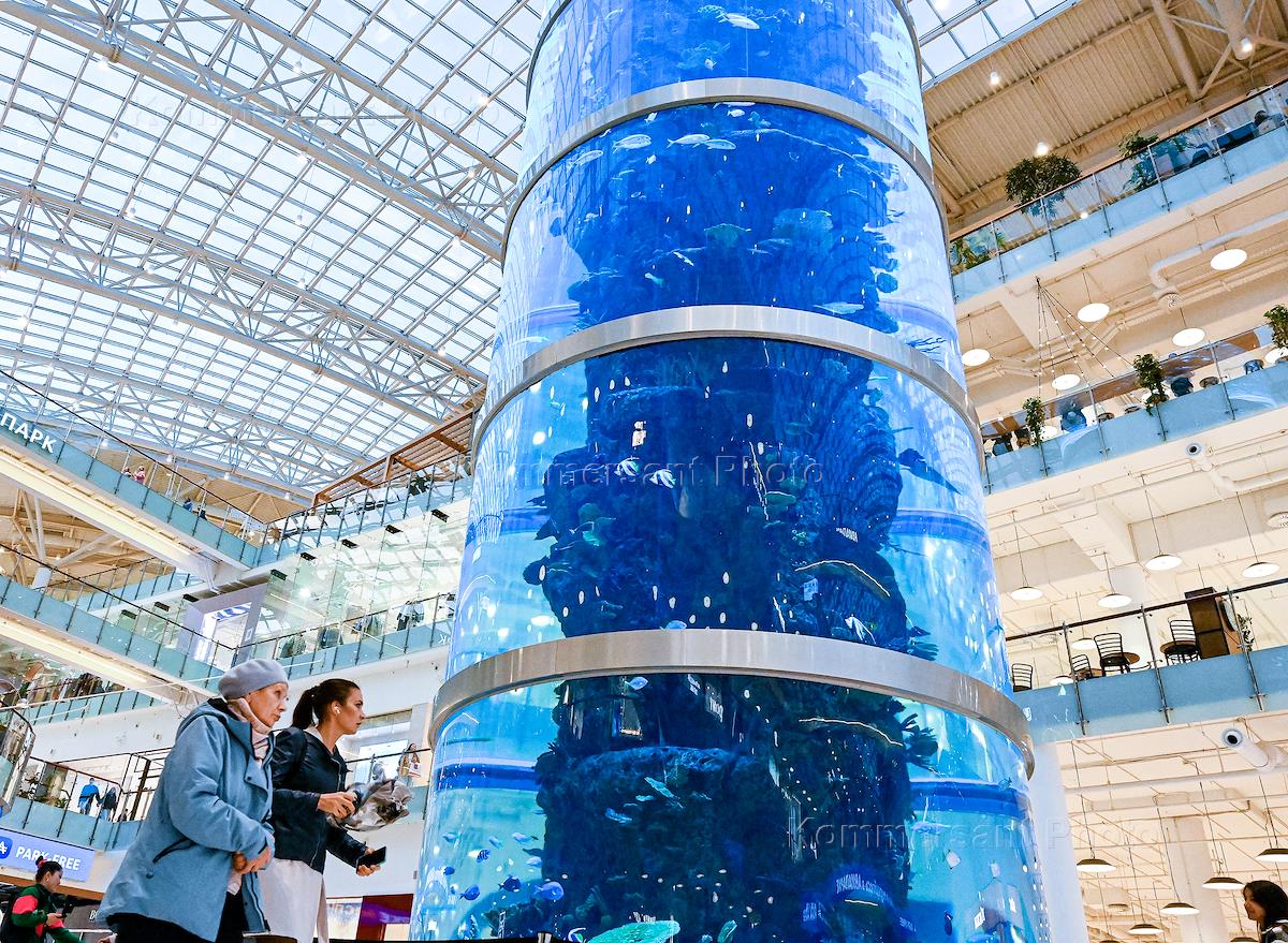 Работа торгового центра (ТЦ) "Авиапарк". Жанровая фотография. Самый большой цилиндрического аквариума в мире.
