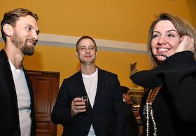 XX церемония вручения премии "Топ 1000 российских менеджеров" в Музыкальном театре "Геликон–Опера". Слева направо: генеральный директор АНО "Диалог" Алексей Гореславский, технический директор компании "Авито" Максим Сапронов и заместитель председателя комитета Государственной думы России по информационной политике, информационным технологиям и связи Андрей Свинцов во время церемонии.