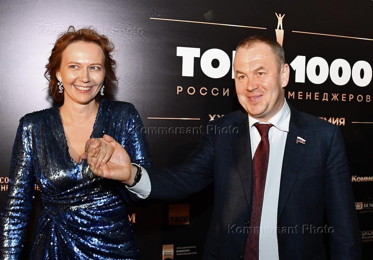 XX церемония вручения премии "Топ 1000 российских менеджеров" в Музыкальном театре "Геликон–Опера". Генеральный директор АНО "Федеральный центр компетенций в сфере производительности труда" Николай Соломон (слева) и заместитель генерального директора по управлению персоналом компании РУСАЛ Наталья Альбрехт (справа) во время церемонии.