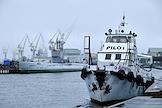 Жанровая фотография. Памятник русскому мореплавателю Ивану Крузенштерну и верфи Балтийского завода во время тумана.