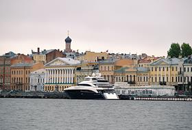 Жанровая фотография. Яхта пришвартована на Английской набережной реки Невы.