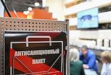 Международная архитектурно-строительная и интерьерная выставка "Красивые дома. Российский архитектурный салон" в МВЦ "Крокус Экспо". Жанровая фотография. надпись на бумажном пакете "Антисанкционный пакет".