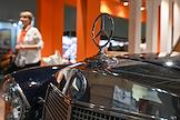 Международная архитектурно-строительная и интерьерная выставка "Красивые дома. Российский архитектурный салон" в МВЦ "Крокус Экспо". Жанровая фотография. Логотип автомобильного концерна "Мерседес Бенц" на капоте автомобиля.