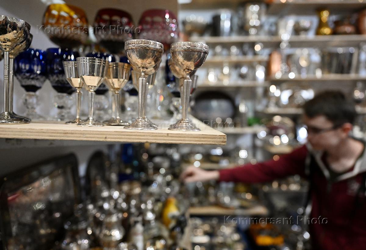 Международная архитектурно-строительная и интерьерная выставка "Красивые дома. Российский архитектурный салон" в МВЦ "Крокус Экспо". Жанровая фотография. Стенд предметов для сервировки стола.